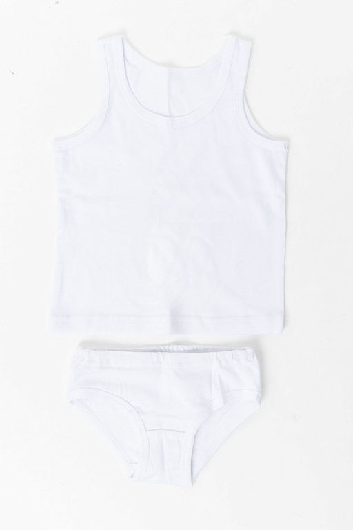 ВНИМАНИЕ: Изображение иллюстрирует модель товара. Фактический цвет указан в названии и может отличаться от представленного на фото. Комплект нижнего белья для девочки выполнен из кулирки, 100% хлопок. Майка с широкими бретелями имеет свободный комфортный крой. Плавки с высокой посадкой и резиной по талии. По горловине, проймам и ножкам комплекта обработка бейкой.