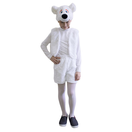 • Карнавальный костюм «Белый медвежонок», шапочка, жилет, шорты, рост 122-128 см