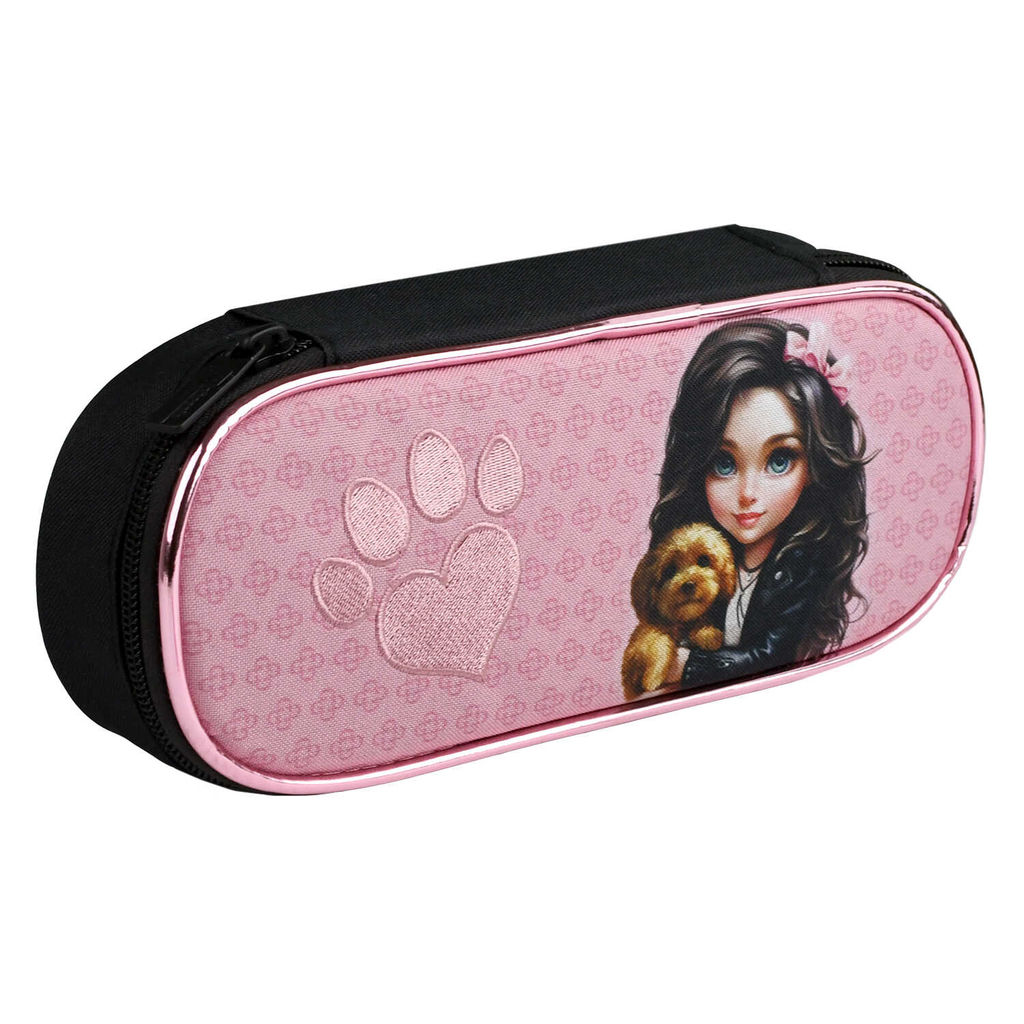 Пенал школьный Феникс+, арт.68329/ 24 БРЮНЕТКА С СОБАЧКОЙ (без наполнения, 22х8.5х4.7 см, полиэстер, молния, вышивка гладью, сублимационная печать, ПЭТ-пакет).