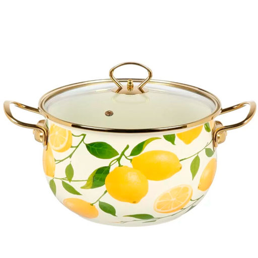 • Кастрюля эмал сталь, 5 л, крышка стекло, Лимоны, Y4-11369 индукция (513825)