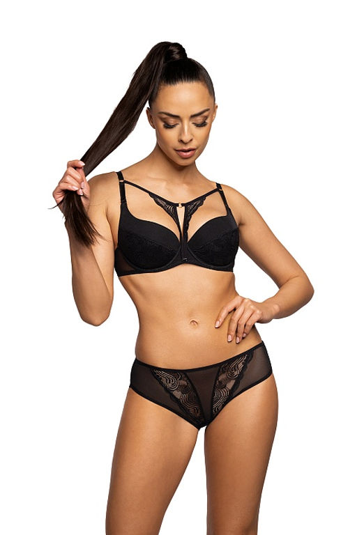 Трусики-слип Melody выполнены из нежного, эластичного кружева и спереди декорированы полупрозрачным тюлем.­