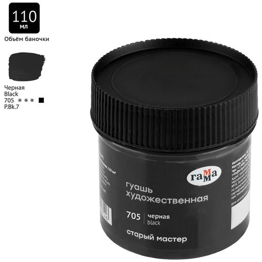 • Гуашь худож. ГАММА "Старый Мастер" черная 110 мл. (121120110705)
