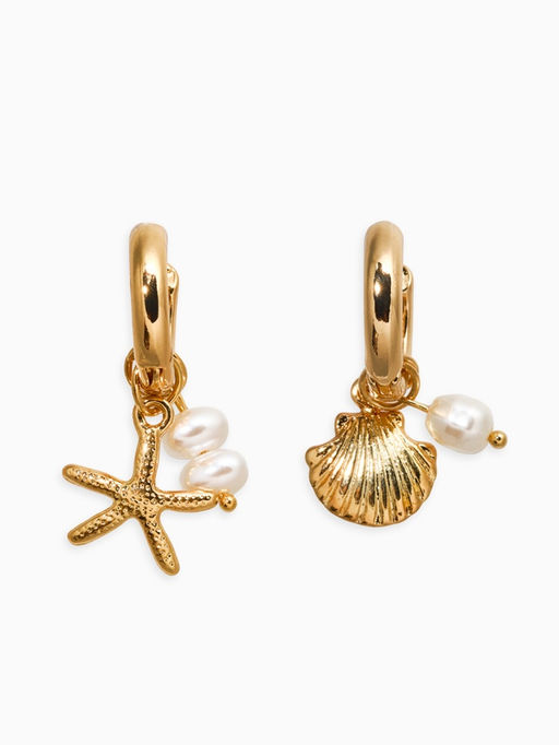 • Серьги жемчуг "Ракушка со звездой", цвет белый в золоте