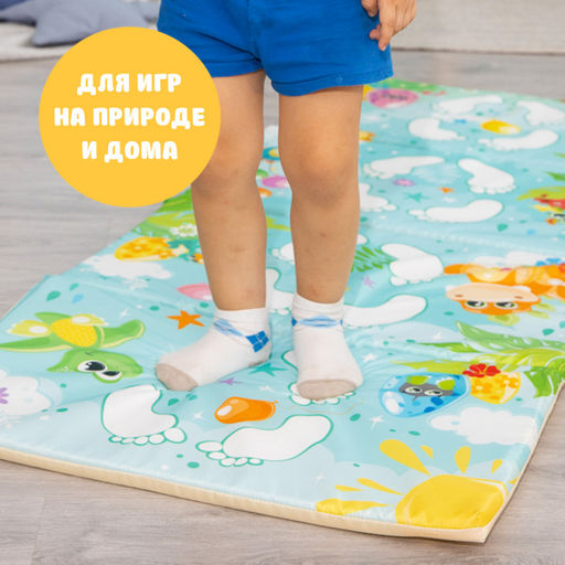 Коврик для малыша 60х144 см выполнен из полиэстера, поролона толщиной 2 см и противоскользящего покрытия. Коврик детский складной не деформируется под воздействием влаги и быстро сохнет. В наборе идет один коврик складной с изображением веселых персонажей и сумка-чехол.