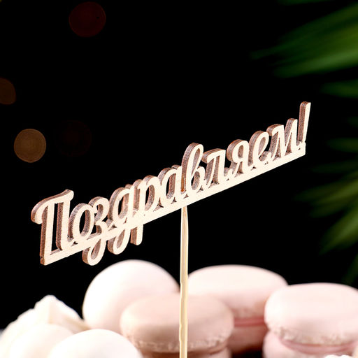 Цена за 10 шт. Топпер "Поздравляем" 13х2,8 см