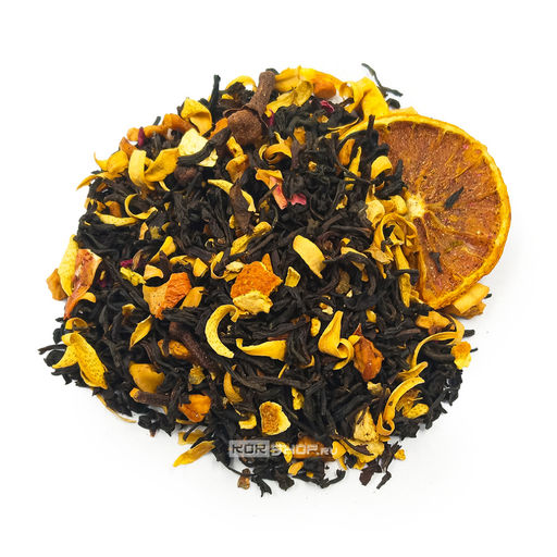 Состав: черный чай, цедра апельсина, роза лепестки, корица, гвоздика, бадьян, яблоко, цветы апельсинового дерева, апельсин дольки, ягоды клюквы, ароматизатор.