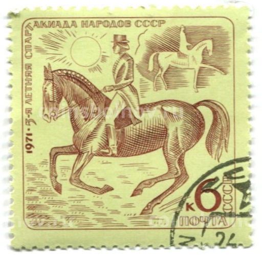 Марка 5-я летняя спартакиада народов СССР (конный спорт) 1971 год