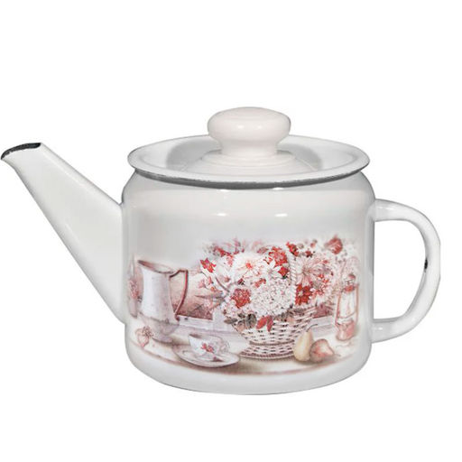 Чайник эмалированный безободковый; Высококачественное двухслойное эмалевое покрытие с деколью, устойчивое к перепадам температуры и механическим воздействиям, а так же к воздействиям окружающей среды; Деколь: Ромашковое поле; Цвет эмали: белый; Цвет внутреннего покрытия: рябчик черный; Арматура на крышке изделия пластмассовая, на корпусе полая; Может быть использован на всех видах кухонных плит; Подходит для мытья в посудомоечной машине.­
