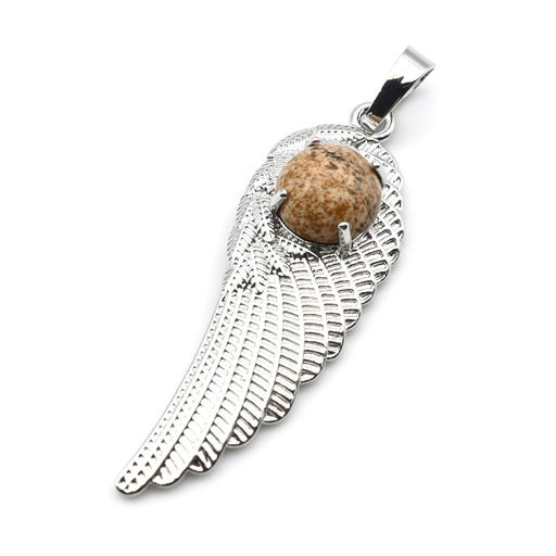 • Подвеска Крыло Ангела 16*47мм с яшмой бежевой