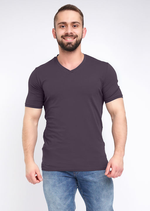 Фуфайка базовой посадки, v-образный вырез горловины, короткий рукав. 92% хлопок, 8% эластан. Плотность 180-190г/м2