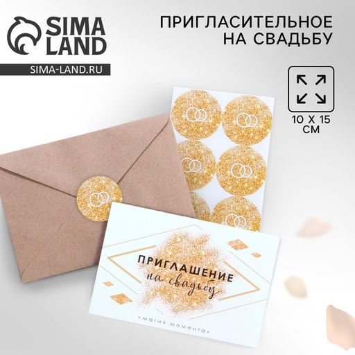 • Цена за 8 шт. Приглашение на свадьбу в крафтовом конверте «Золотые блестки», 10 х 15 см.