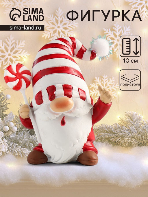 Фигурка полистоун «Дед Мороз в белом колпаке в красную полоску, с леденцом», 9×6.5×10 см
