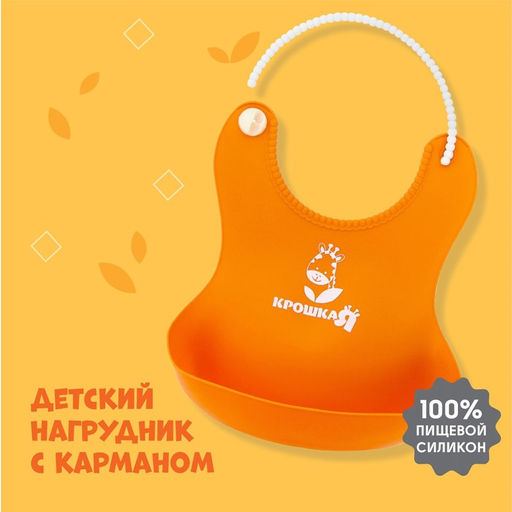 • Нагрудник для кормления силиконовый с карманом, оранжевый