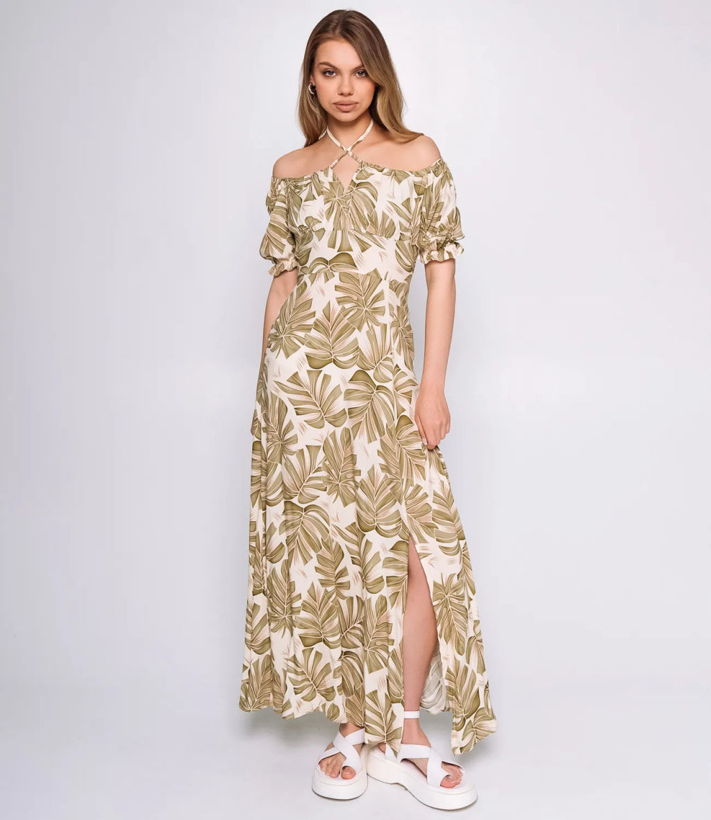 Платье представляет собой изысканную модель в пол с приталенным кроем, выполненным из легкого и дышащего материала, состоящего на 70% из вискозы и 30% из полиэстера. Это идеальное сочетание гарантирует комфортный микроклимат даже в самые жаркие дни. Округлый вырез с затяжкой спереди позволяет регулировать посадку по линии груди, что делает его подходящим для разных типов фигур. Рукава оформлены расклешенными рюшами, что придает образу игривость и легкость. Линия талии подчеркивается, а юбка струится вниз с высоким разрезом спереди, обеспечивая свободу движения и открывая возможность создания стильных образов. Это платье идеально подойдет для летнего гардероба и различных мероприятий, сочетая элегантность и комфорт в одном флаконе. Обратите внимание на насыщенный цвет и яркий принт, которые полностью соответствуют представленным фотографиям на сайте. Мы понимаем, как важно обеспечить точный выбор размера, поэтому на странице нашего сайта размещена таблица размеров. Воспользовавшись ею, ваши покупательницы смогут без труда обмерить себя и найти идеальный вариант. Предложенная цена на это платье является доступной для оптовых покупателей, что делает его отличным предложением для вашего бизнеса. Подарите своим клиенткам возможность быть стильными и элегантными в этом потрясающем платье, которое прекрасно подчеркнет их индивидуальность и сделает любой образ незабываемым! Рост модели: 168, параметры: 89-63-90.­