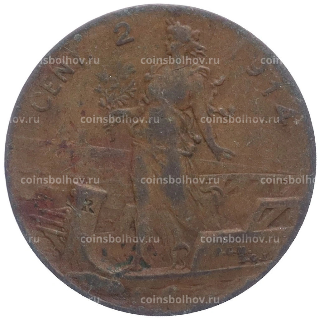 • Монета 2 чентезимо 1914 года Италия
