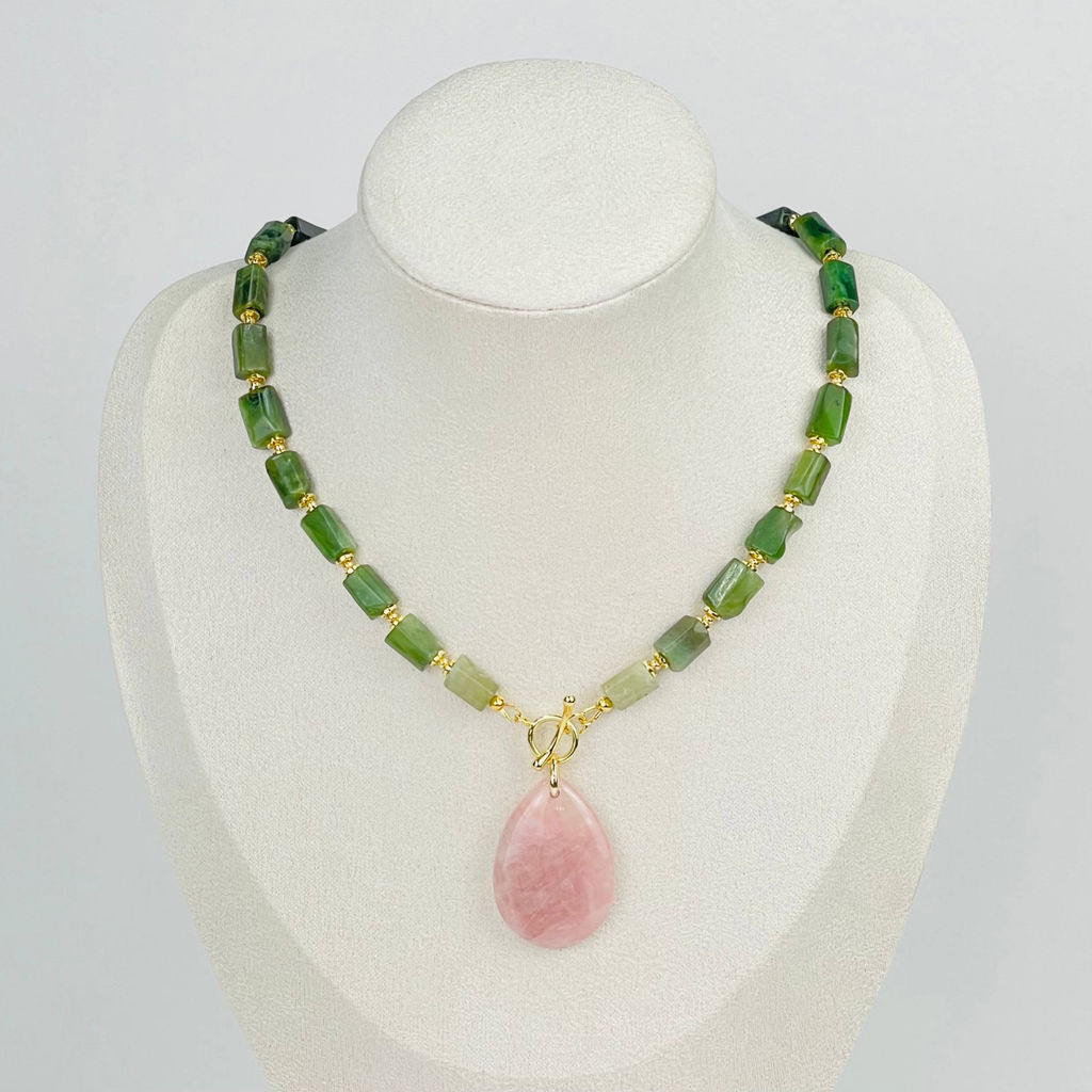 Колье из Нефрита и Розового кварца (градиент) 42 см
