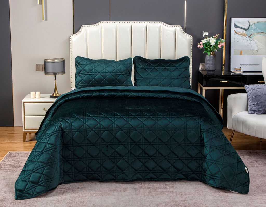 • Стеганное покрывало Dori (изумруд) 240х260см (1), 50х70см (2)