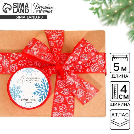• Цена за 2 шт. Лента атласная новогодняя «Ёлочные украшения», красная, 4 см × 5 м