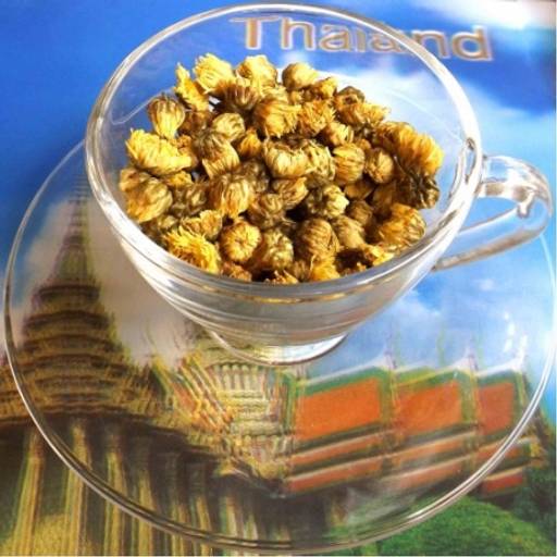 Чай из белой хризантемы Chrysantemums Tea Чай из засушенных крупных цельных цветов белой чайной хризантемы с глубоким ароматом, который хорошо освежает, снимает усталость глаз и облегчает головную боль. При заваривании цветы хризантемы красиво открывают свои лепестки и желтые сердцевинки, вкус настоя - цветочный, свежий, немного пряный, аромат легкий хвойный. Чай Белая Хризантема очень хорошо использовать как добавку к другим чаям, особенно интересный вкус получается при добавлении к чаю Пуэр терпкий, хвойный очень приятный и необычный аромат и богатый вкус. Вес 100 грамм. Чай из Белой Хризантемы способствует укреплению иммунитета, его рекомендуют пить при инфекционных заболеваниях, в период простуды и гриппа. Традиционно цветы хризантемы добавляют к обычному черному чаю или к черному Пуэру это смягчает некоторую терпкость и добавляет тонкого цветочно-хвойного аромата напитку. Но и к зеленому чаю можно добавить небольшое количество Белой хризантемы совсем немного - чтобы лишь подчеркнуть тонкий аромат чая цветочными нотками. Заваривание: В чай не следует класть много цветов хризантемы, иначе ее сильный вкус и запах затенят аромат самого чая. Температура воды не должна превышать 85-90 град. Так же как и зеленый чай, хризантемы выдерживают несколько заварок. Приятного Вам чаепития!