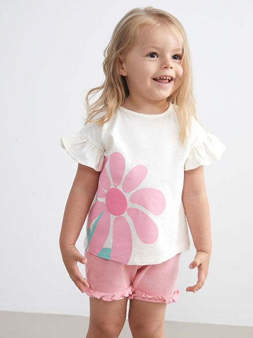 ?i?ekli K?z Bebek Bluz ve ?ort 2li