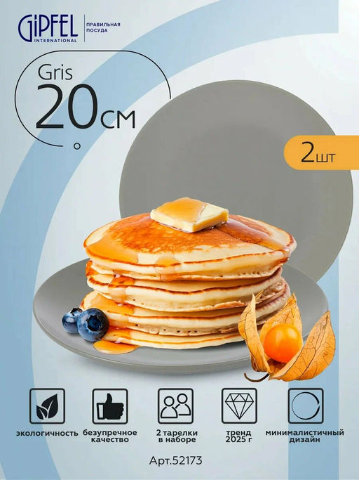 Набор тарелок Gipfel Gris 52173, диаметр 20 см. В наборе 2 тарелки.