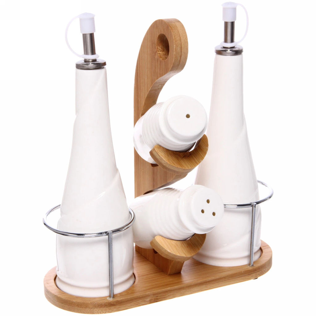 • Набор для специй 4 предмета "White magic" (2емкости для масла 400мл и уксуса+2солонки) полоски