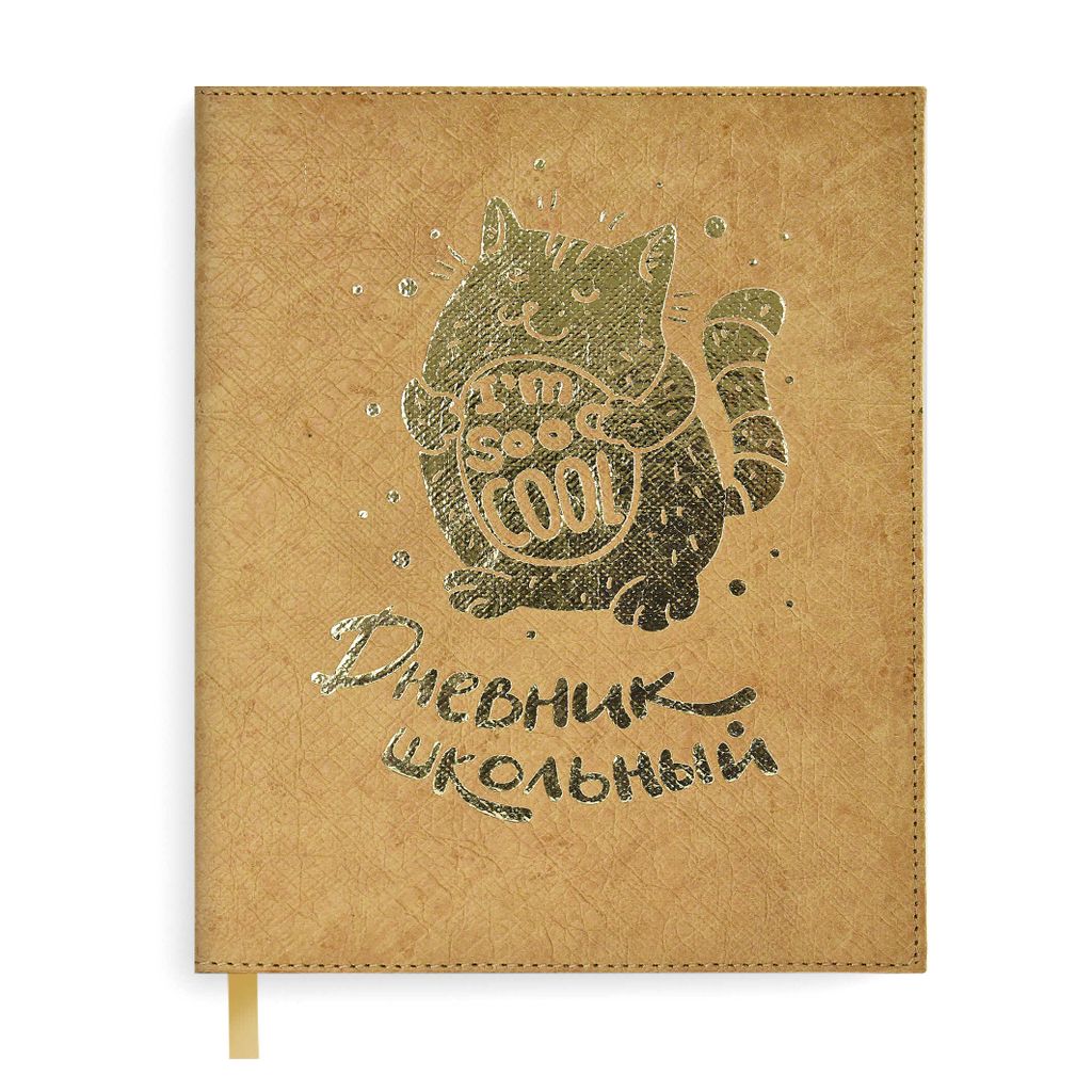 Дневник школьный арт. 50955 / 15 КОТ (твёрдый переплёт с поролоном, А5+, 48 л., тиснение фольгой, одно ляссе, универсальная шпаргалка, ПЭТ-пакет)