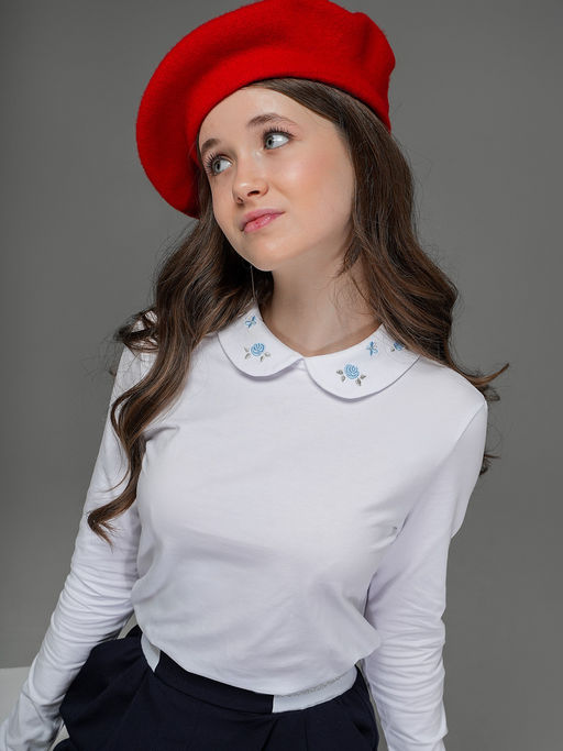 Блузка для девочки из трикотажного полотна с длинным рукавом, прилегающего