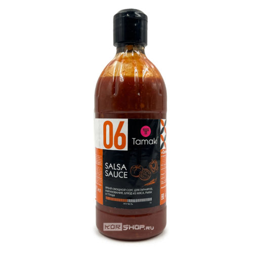 Соус Сальса Tamaki знаменитый мексиканский томатный соус с богатой вкусовой гаммой. Он чаще всего используется как соус для обмакивания, придавая блюдам пикантные вкусовые нотки. В него макают курицу, лепешки, хлеб, кукурузные чипсы, картофельные дольки, котлеты, фрикадельки, наггетсы, стрипсы. При этом он замечательно переносит термообработку и может использоваться для тушения мяса с овощами и запекания. Соус Сальса добавляют как приправу в пиццу, фахитас, буррито и другие блюда. Соус обладает средней степенью остроты. Он манит аппетитным ароматом кинзы, лайма и зиры, очень популярных в мексиканской кухне. Соус Сальса хорошо сочетается с курицей, рыбой, мясом, креветками, картофелем, рисом, бобовыми и блюдами из теста. Изготовлен по традиционной рецептуре кухни текс-мекс.
