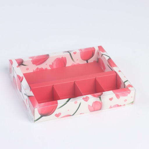 • Цена за 5 шт. Коробка под 4 конфеты и шоколад с ячейками «Тюльпаны» 18.8 х 15.7 х 3 см