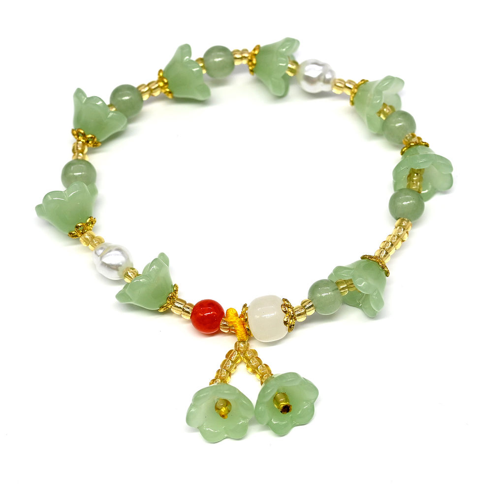• Браслет с подвеской "Цветы" цв.зеленый, 17см