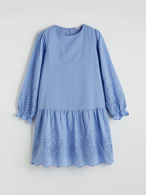 Bisiklet Yaka Fisto Detayl? K?z ?ocuk Poplin Elbise