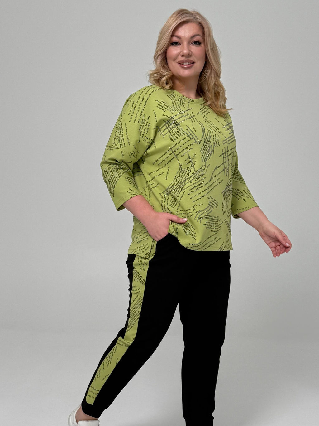 Туника с текстовым принтом и стразами светло-зеленый­
