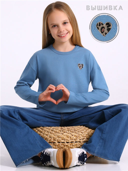 лонгслив,хлопок 100%,кулир / хлопок 100%,серо-голубой250 / - / Сердце лео вышивка / - / - / -,Лонгслив для девочки выполнен из кулира легкого хлопкового плотна. Изделие прямого силуэта и свободного кроя, с длинными рукавами со спущенной линией плеча, вырез горловины обработан эластичной бейкой из полотна компаньона, украшено стильным принтом. Уход: только машинная стирка (руками не стирать!) при температуре 40 градусов, без предварительного замачивания. Изделия с печатью перед стиркой необходимо вывернуть на изнаночную сторону.