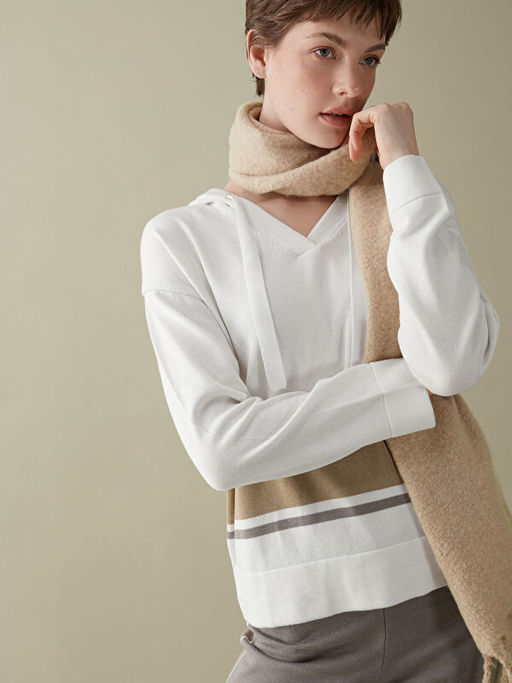 • Kap??onlu Renk Bloklu Oversize Kad?n Triko Kazak