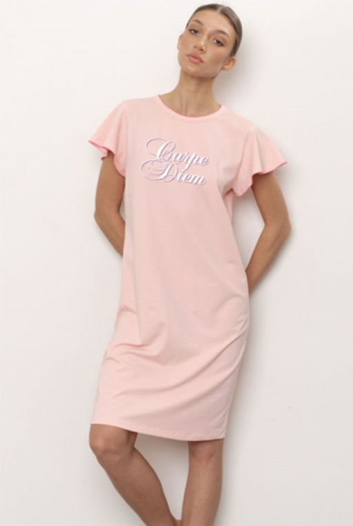 Нежная сорочка с круглым вырезом горловины, рукавами крылышки комфортной длины. Модель представлена в 4-х цветовых решениях. Однотонные варианты декорированы тематическим принтом. Горловина и низ рукавов декорированы