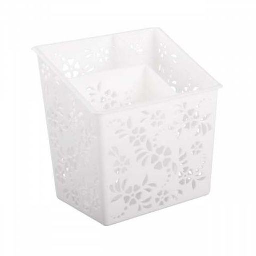 Подставка станет универсальным решением для хранения столовых приборов, расчесок, пультов, канцелярии и других мелочей.  Подставка имеет внутреннюю вставку, которая разделяет ее на три части. Интересный дизайн впишется в любой интерьер.
