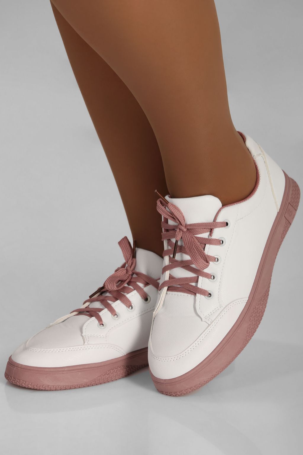 Кроссовки с розовой подошвой и шнурками