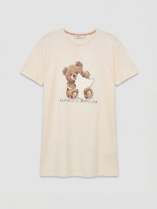 Bisiklet Yaka Ay? Teddy Bask?l? Kad?n Gecelik