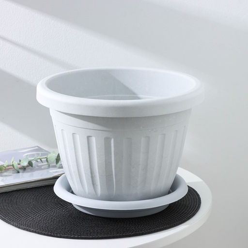 Горшок для цветов с поддоном «Сильвер ЭКО», 7.2 л, d=28 см, пластиковый светло-серый