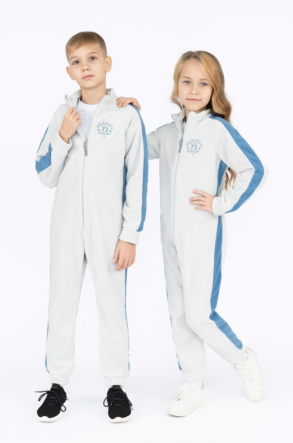 Зимой под верхнюю мембранную одежду малышу будет удобно носить флисовый комбинезон-поддёву. Модель выпускается из флиса Shelys светло-серого цвета с полосами по бокам и рукавам синего цвета, обработанного антипиллинговым составом. Комбинезон не электризуется, хорошо сохраняет тепло и греет во влажном состоянии, если малыш вспотеет. Модель имеет внутреннюю защитную планку, воротник-стойку и плотные манжеты. В область поясницы пришита резинка, по центру проходит прямая молния-застёжка. К плоскому слайдеру молнии прикреплен тканевый пуллер.