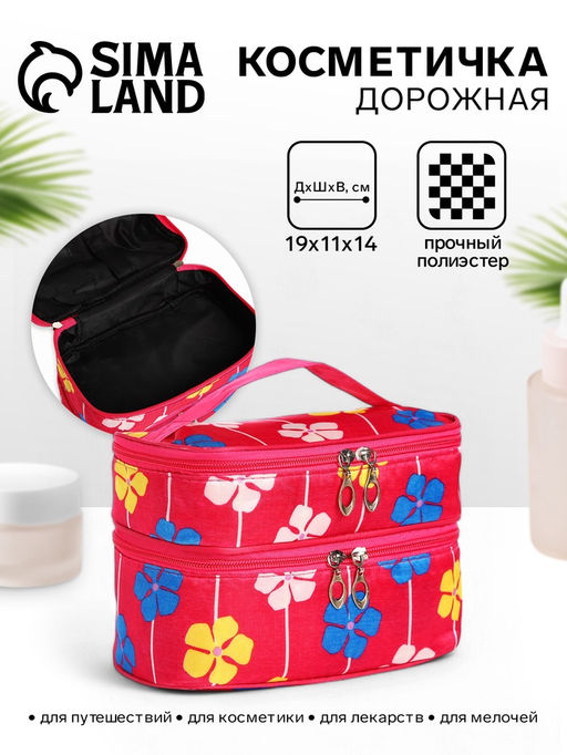 Косметичка - органайзер на молнии, с отделами, с рисунком, малиновая