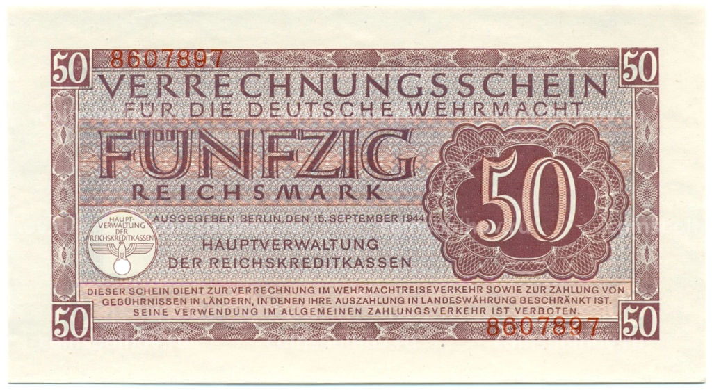 Банкнота 50 рейхсмарок 1944 года Германия (Вооруженные силы Германии)