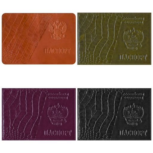 Обложка "Паспорт" OfficeSpace (231522) натур. кожа тип 3, тиснение "крокодил и герб", цвет в ассортименте