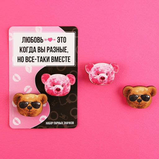 Порадуй свою вторую половинку стильным аксессуаром. Набор парных значков станет отличным дополнением к подарку на 14 Февраля. Он и она две половины одного целого!