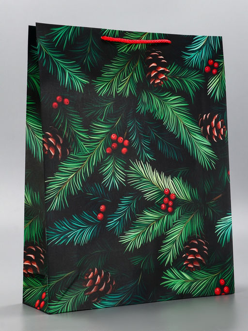 • Цена за 2 шт. Пакет подарочный новогодний ламинированный, «Шишки», 33×10×42.5 см