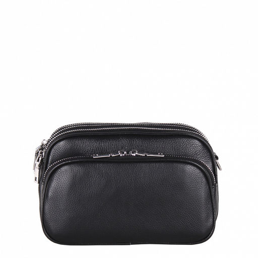 Сумка кросс-боди, выполнена из натуральной кожи. Дополнена  серебристой фурнитурой. Данная модель закрывается на молнии. Каркас мягкий. Носится на плече. В комплекте имеется съемный ремень и короткая ручка.