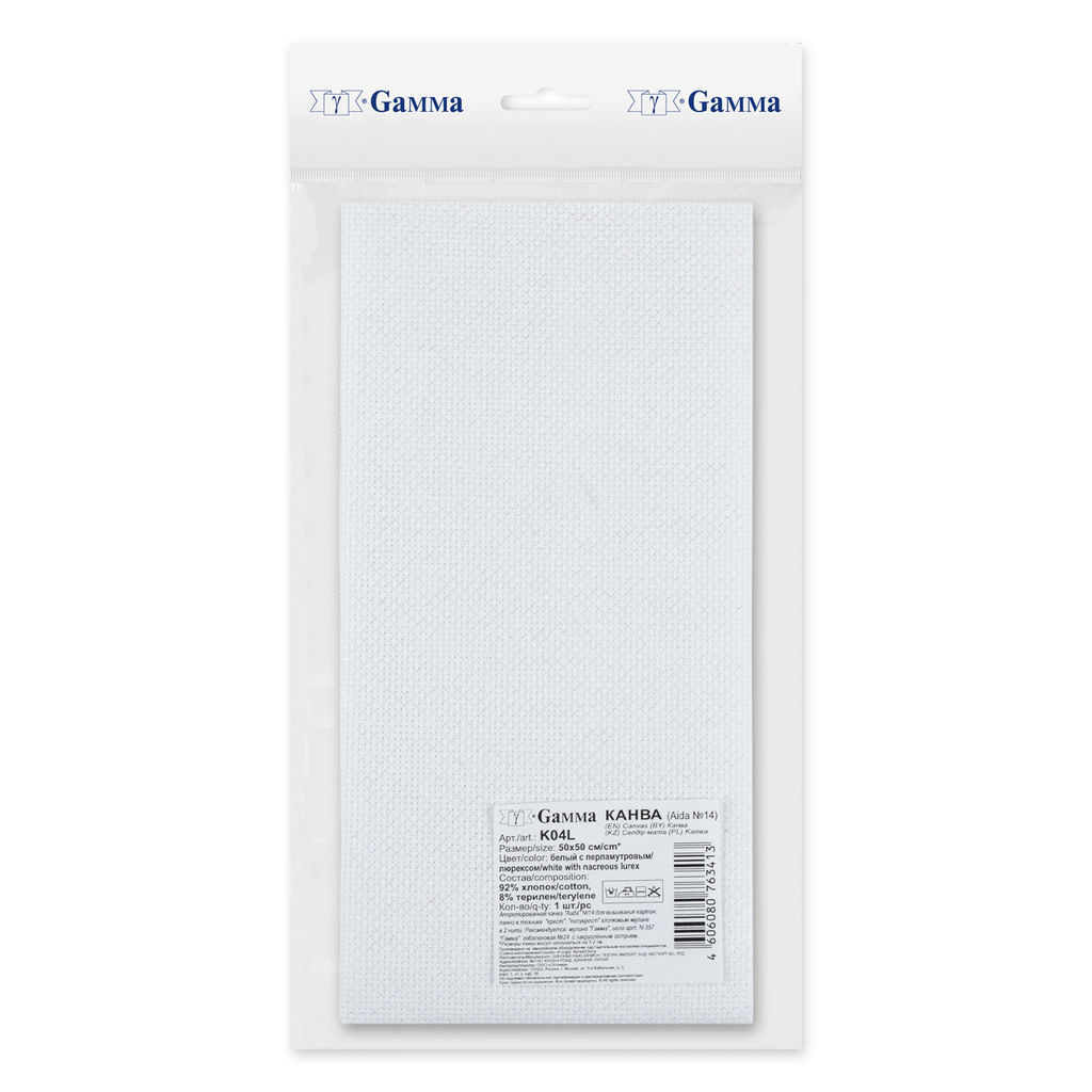 Канва K04L Gamma Aida №14 ФАСОВКА 92% хлопок, 8% терилен 50 х 50 см 2 см белый с перламутровым люрексом