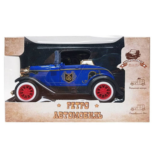 Автомобиль ретро, кузов "кабриолет", синий (9/0093, "Нордпласт") откр. двери, в коробке 14*8,5см