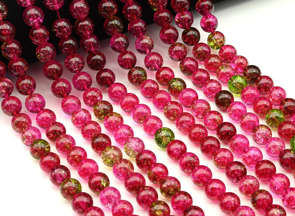 Бусины из кварца тонированного шарик 10мм цвет розово-зеленый, 38см, 39 бусин Радуга камня